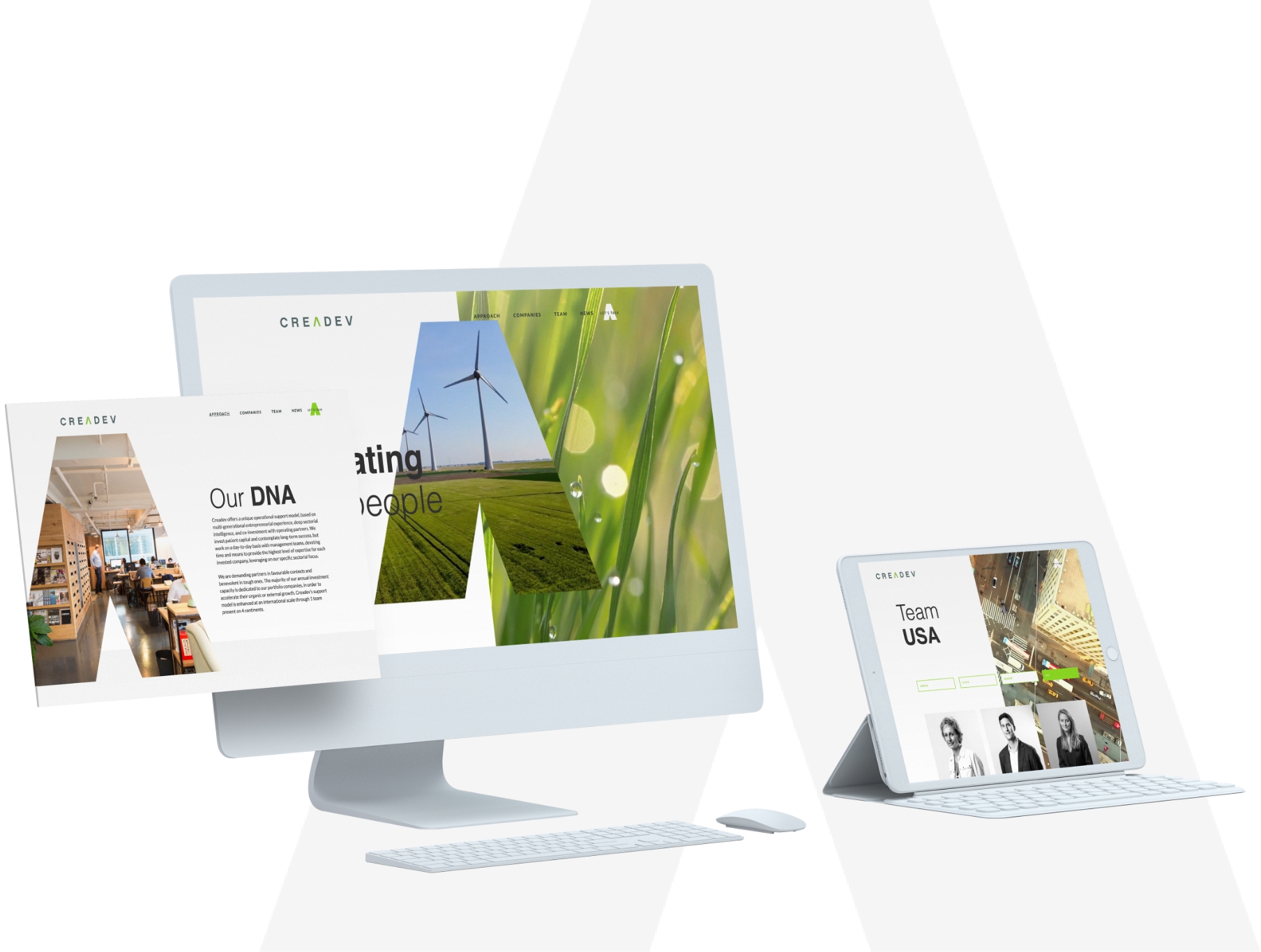 Notre parti pris était clair : rendre le site attirant, moderne et limpide, avec une promesse compréhensible dès la home page, un design épuré, travaillé à partir du « A » du logotype historique. Ce « A » évidé, symbole de flèche vers le haut,